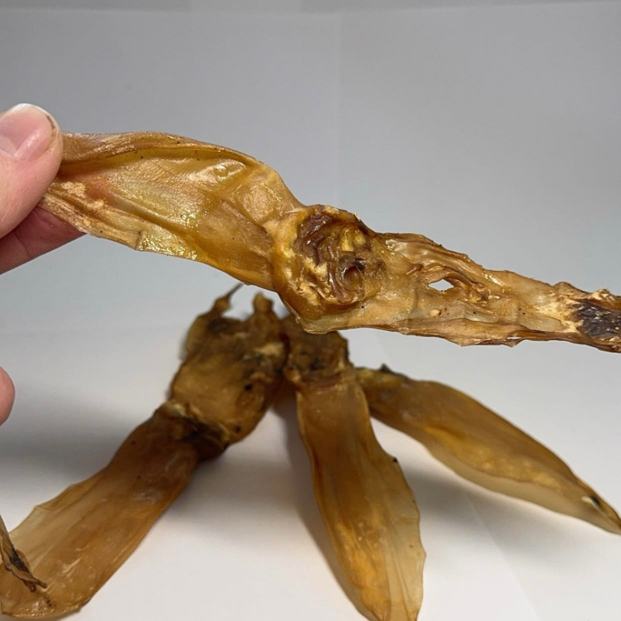 Sušené králičí uši bez srsti jsou vhodným žvýkacím pamlskem i pro psy trpícími na potravinové alergie.