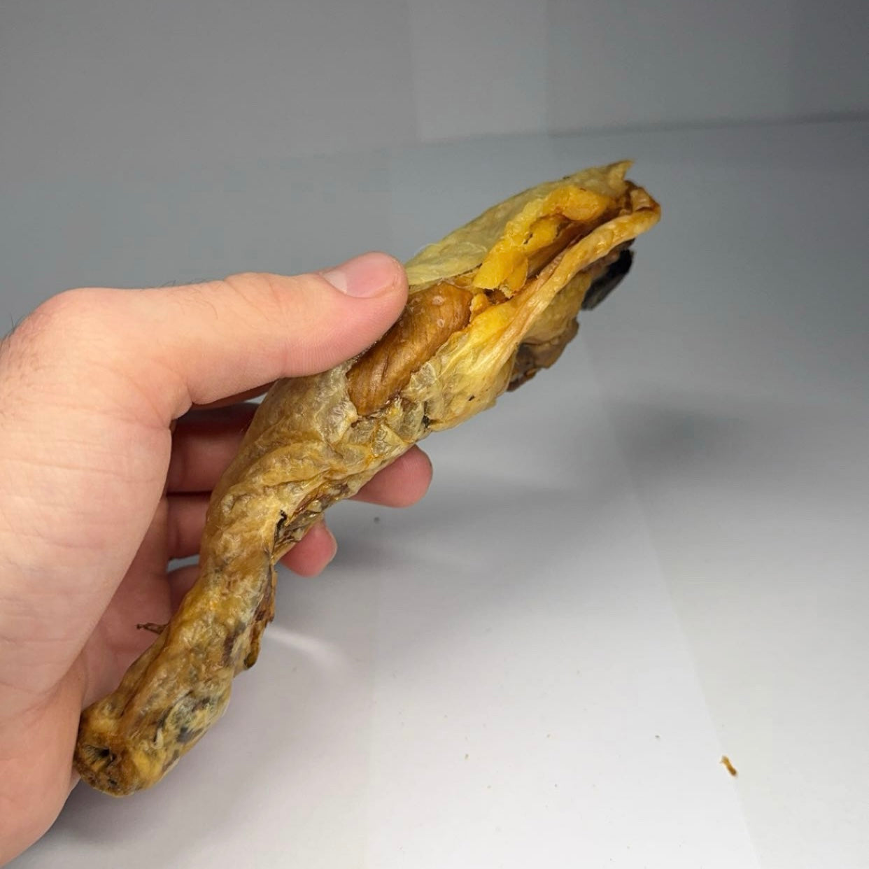 Složení: 100 % kuřecí maso, přírodní kolagen, minerály (vápník, fosfor), esenciální mastné kyseliny, přírodní vitamíny (A, D3, E).