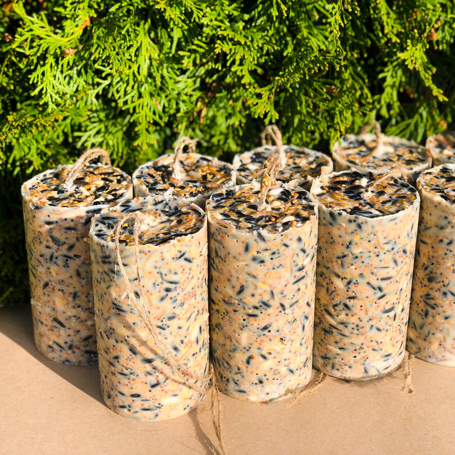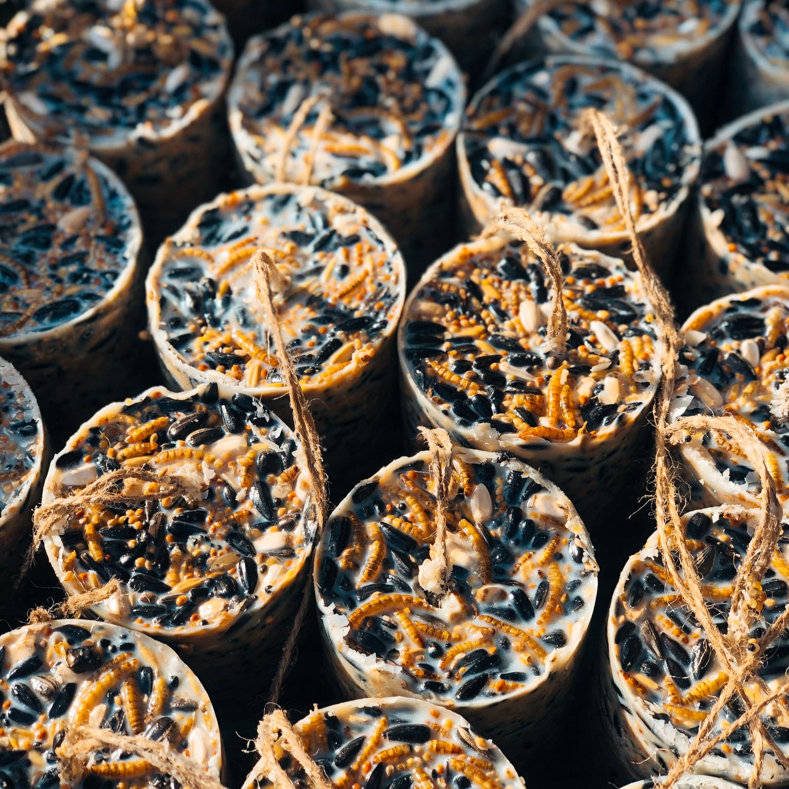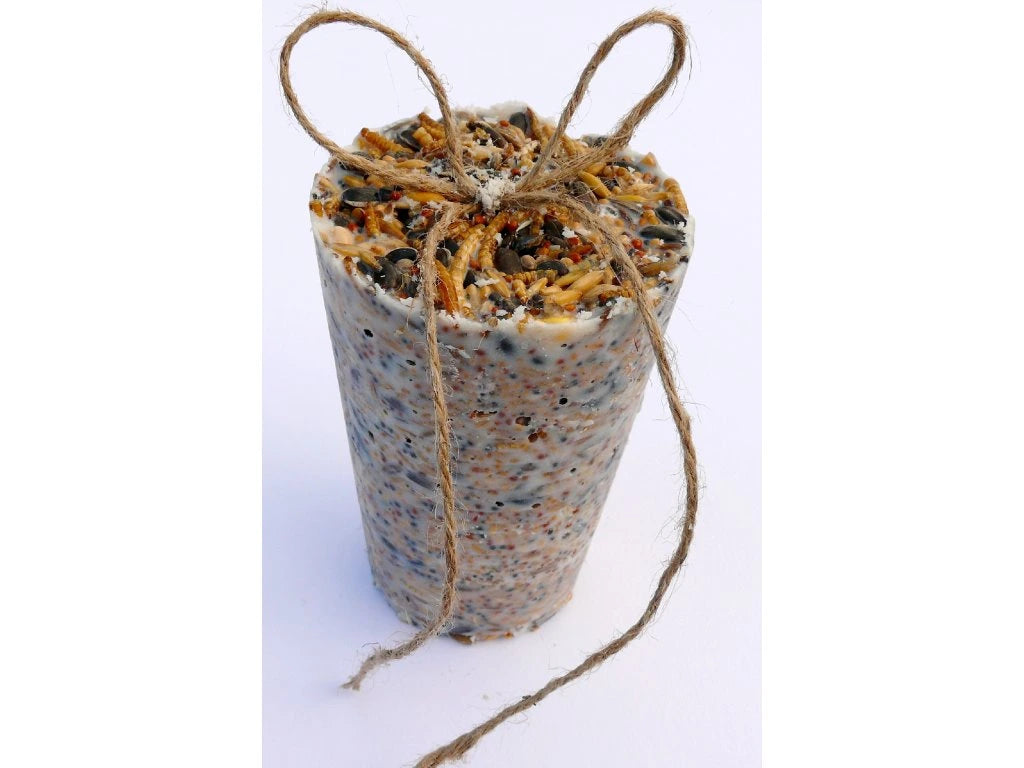 Lojový válec 🌿, hmotnost 500g , nabízí tradiční směs semen 🌾, obilovin a olejnin 🌻. Vylepšený pořádnou dávkou výživných moučných červů 🐛.