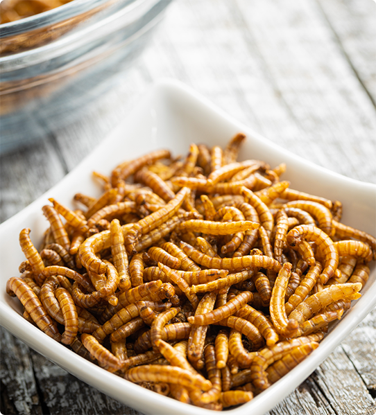 Larvy sušených Moučných červů jsou 100% přírodní doplňkové krmivo pro ptáky, ryby, ještěrky, leguány, želvy, žáby, ježky, křečky, myši, potkany, malé savce, kočky a psy.