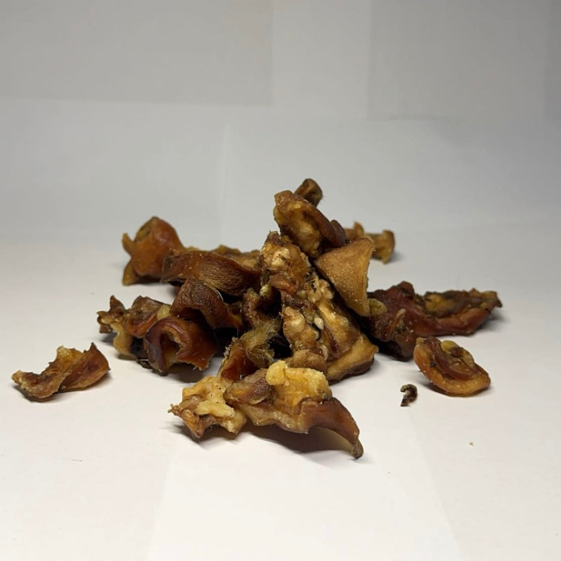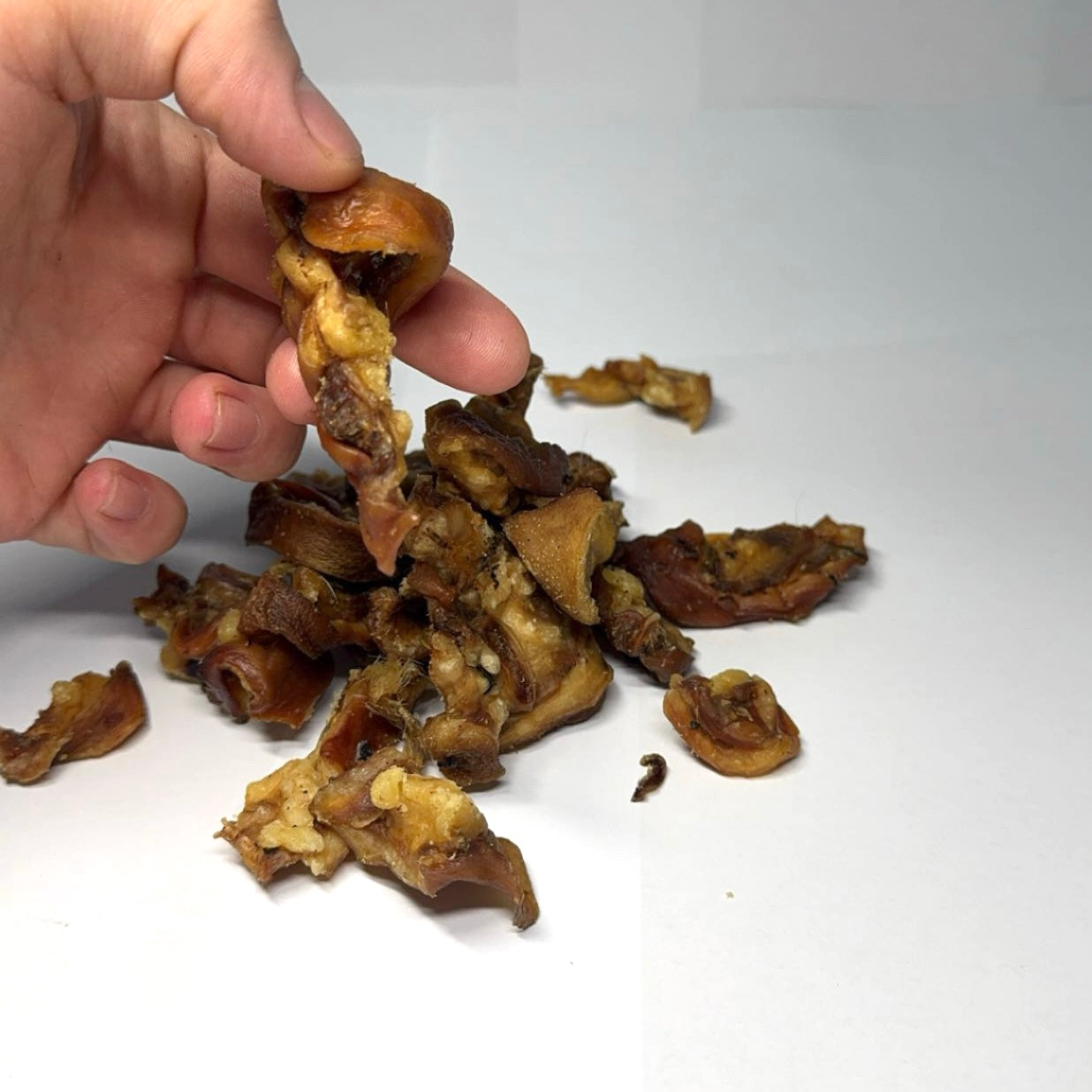 Vepřové záouška jsou části ucha prasete, které mají vysoký obsah minerálů a kolagenu. Jsou o přibližně 30 % tučnější než běžné sušené uši, což je dělá pro psa nejen chutné, ale i lákavé.